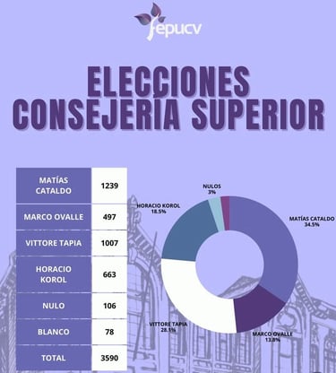 Tras el conteo de votos, el TRICEL confirmó que los dos cargos de Consejero Superior serán ocupados por Vittore Tapia (Derecho), de la Lista Confía y Matías Cataldo (Pedagogía en Historia), vinculado a Nuevo Horizonte.